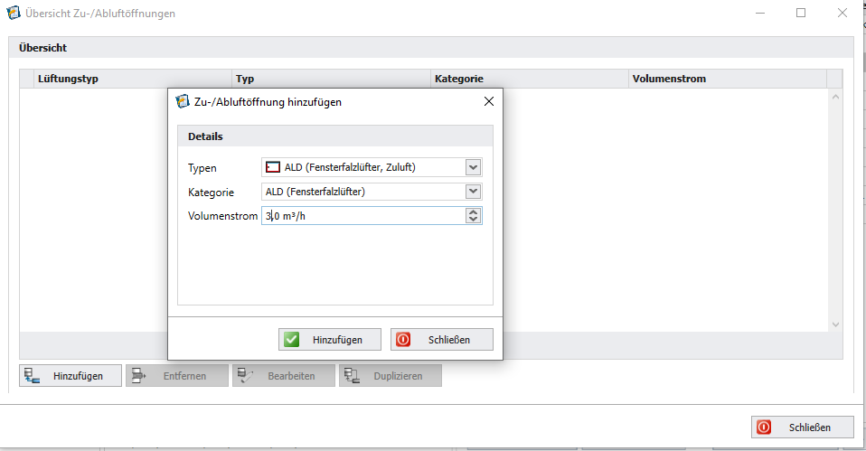 Berücksichtigung von Fensterfalzlüftern (ALD) |